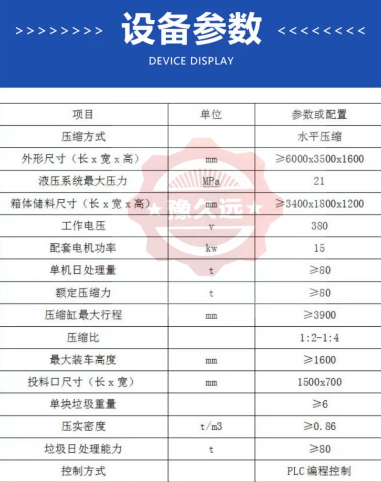 水平式生活垃圾壓縮中轉(zhuǎn)設(shè)備是將垃圾的卸(出)料、壓縮、儲(chǔ)存集合在一起,整體落于地下,利用地下空間將垃圾密閉在箱體內(nèi),地面上無(wú)垃圾外露現(xiàn)象,壓縮垃圾產(chǎn)生的污水經(jīng)排污管道直接流入污水井內(nèi),然后由污水泵排到城市污水管網(wǎng),徹底解決了垃圾在收集、儲(chǔ)存、裝運(yùn)過(guò)程中的污染環(huán)境、作業(yè)效率低等問(wèn)題。