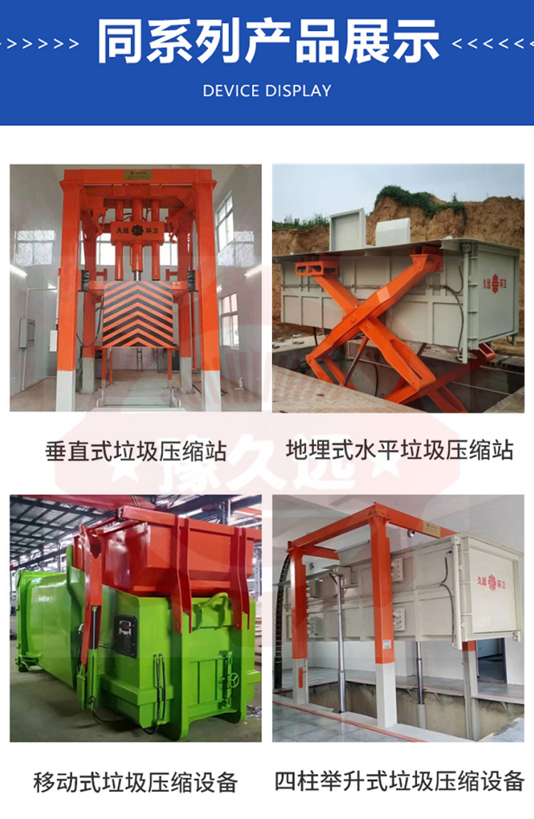 垂直式垃圾壓縮設(shè)備在原立式壓縮站的基礎(chǔ)上將單杠直壓變?yōu)槿淄瑝海蟠蠼档土朔课莞叨?,科技含量高;采?2只液壓油缸控制運(yùn)行,操作更加靈活簡便,性能穩(wěn)定。該產(chǎn)品適用于城鎮(zhèn)生活垃圾的儲(chǔ)存、壓縮和轉(zhuǎn)運(yùn),通常可設(shè)置在靠近街道及居民生活小區(qū)內(nèi),是當(dāng)今生活垃圾處理的理想設(shè)備。